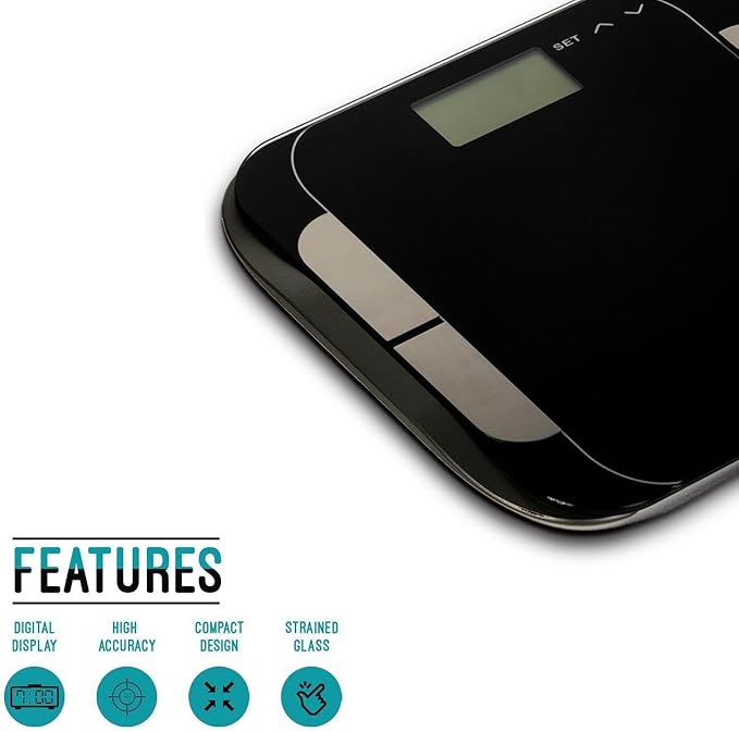 With a high-precision sensor system, it delivers accurate and consistent readings up to 180kg / 400lb / 28st, making it suitable for a wide range of users. The sleek black tempered glass platform adds a modern touch to your bathroom while ensuring durability and safety.